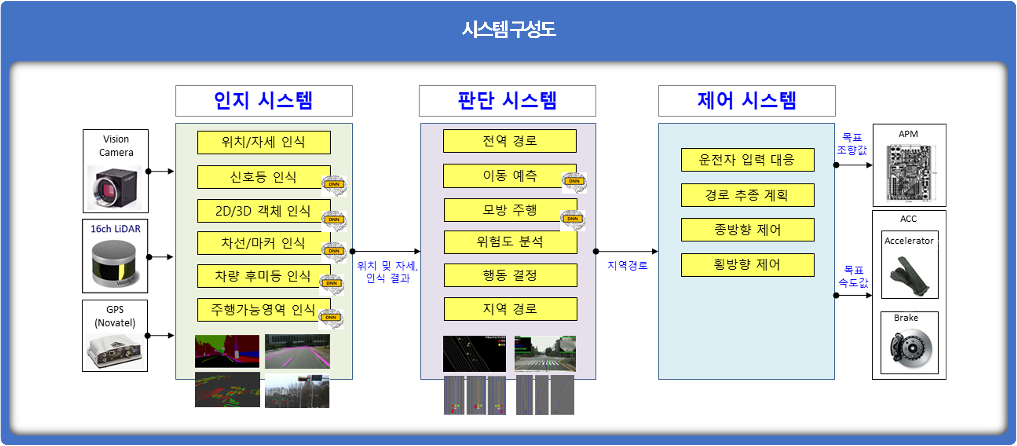 주행 환경 데이터 수집 차량 2대를 이용하여 국내 도로 환경 10만Km와 학습용 데이터를 개인정보 비식별화 후 7종의 학습 데이터셋을 가공하고 국가 공공 데이터 포털에 공개하고 있습니다.