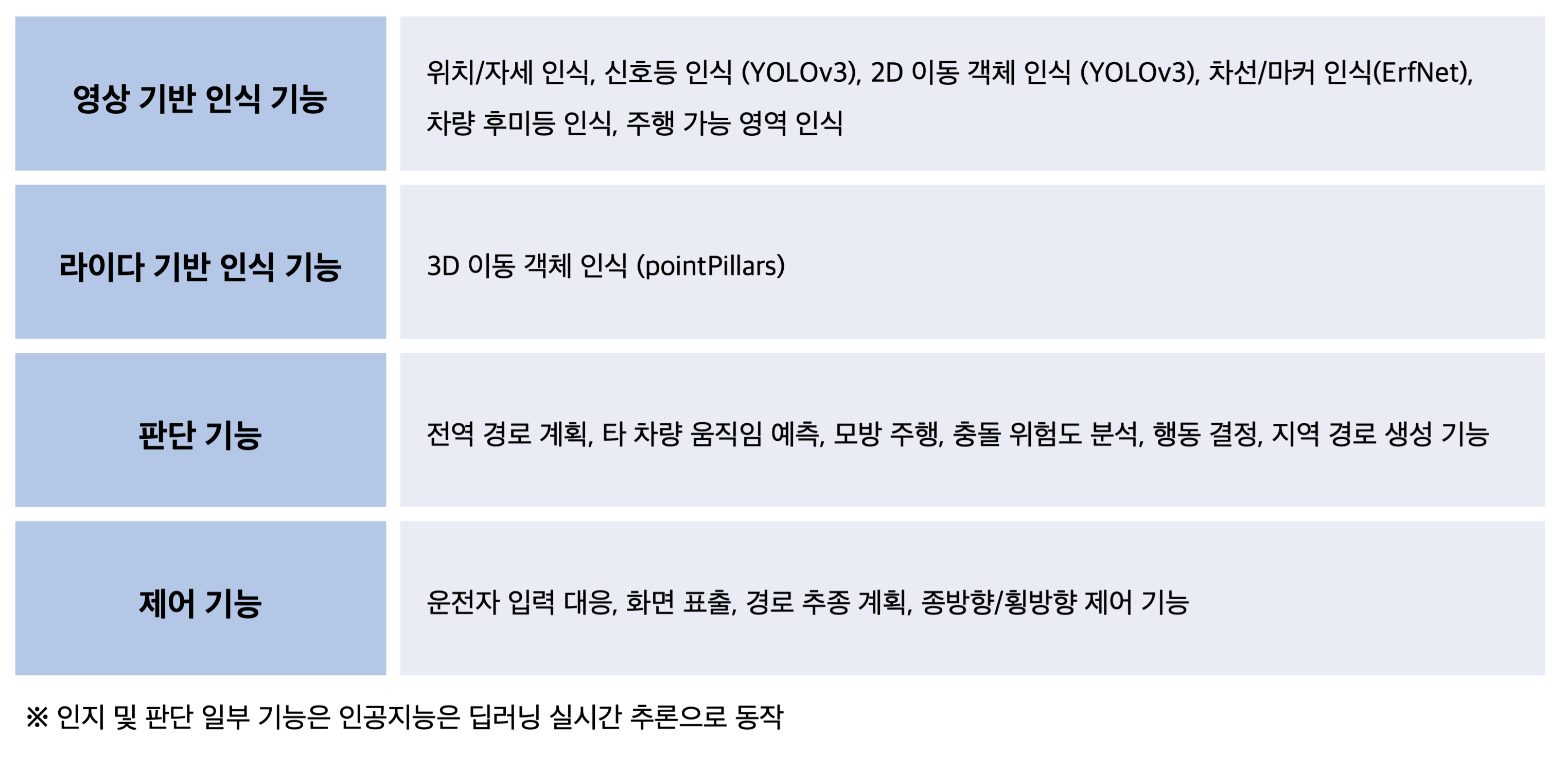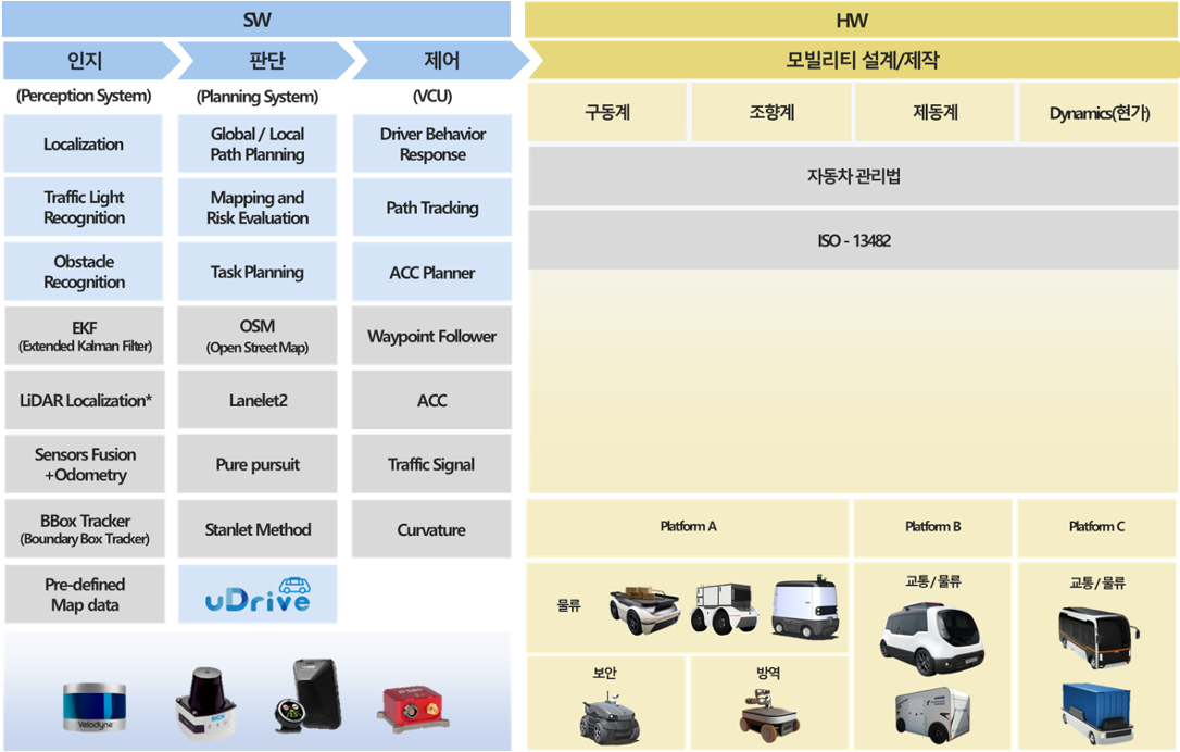 센서 재구성을 용이하게 하기 위해 이종 다수의 센서 간 캘리브레이션 S/W 구현과 기본적인 인공지능 융합의 인지 판단 기능을 구현한 후,